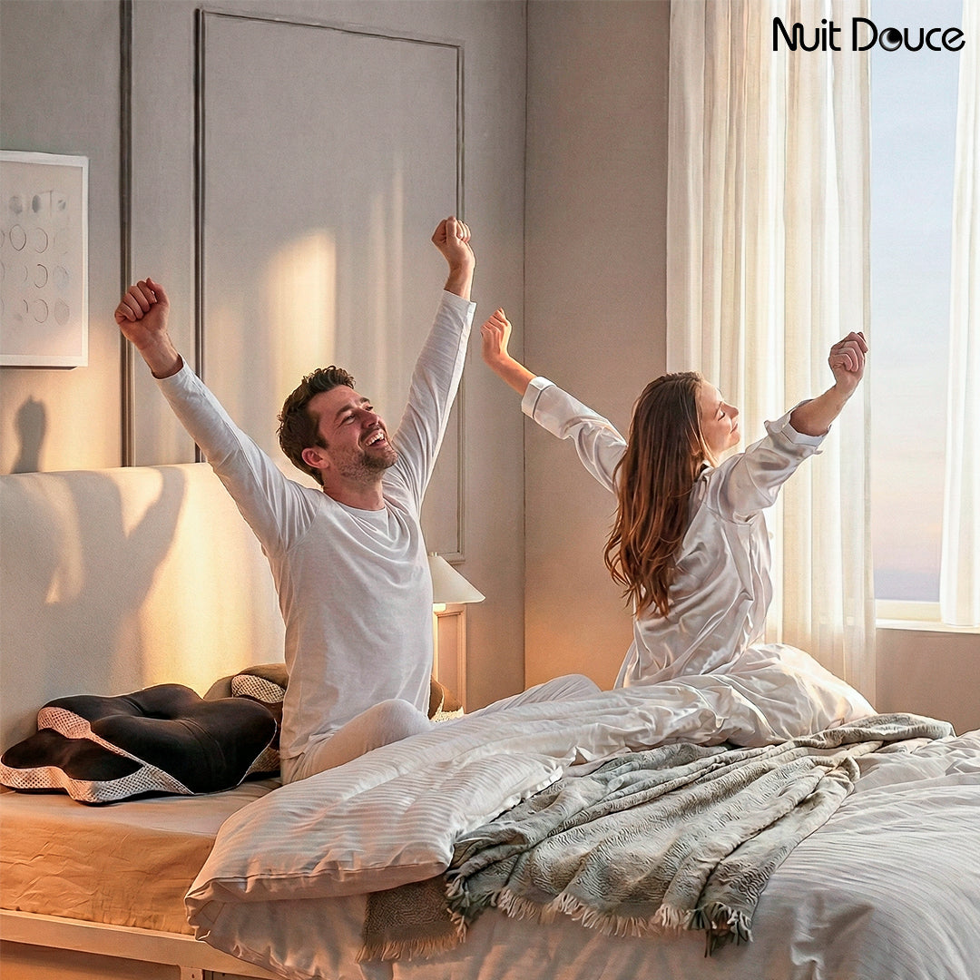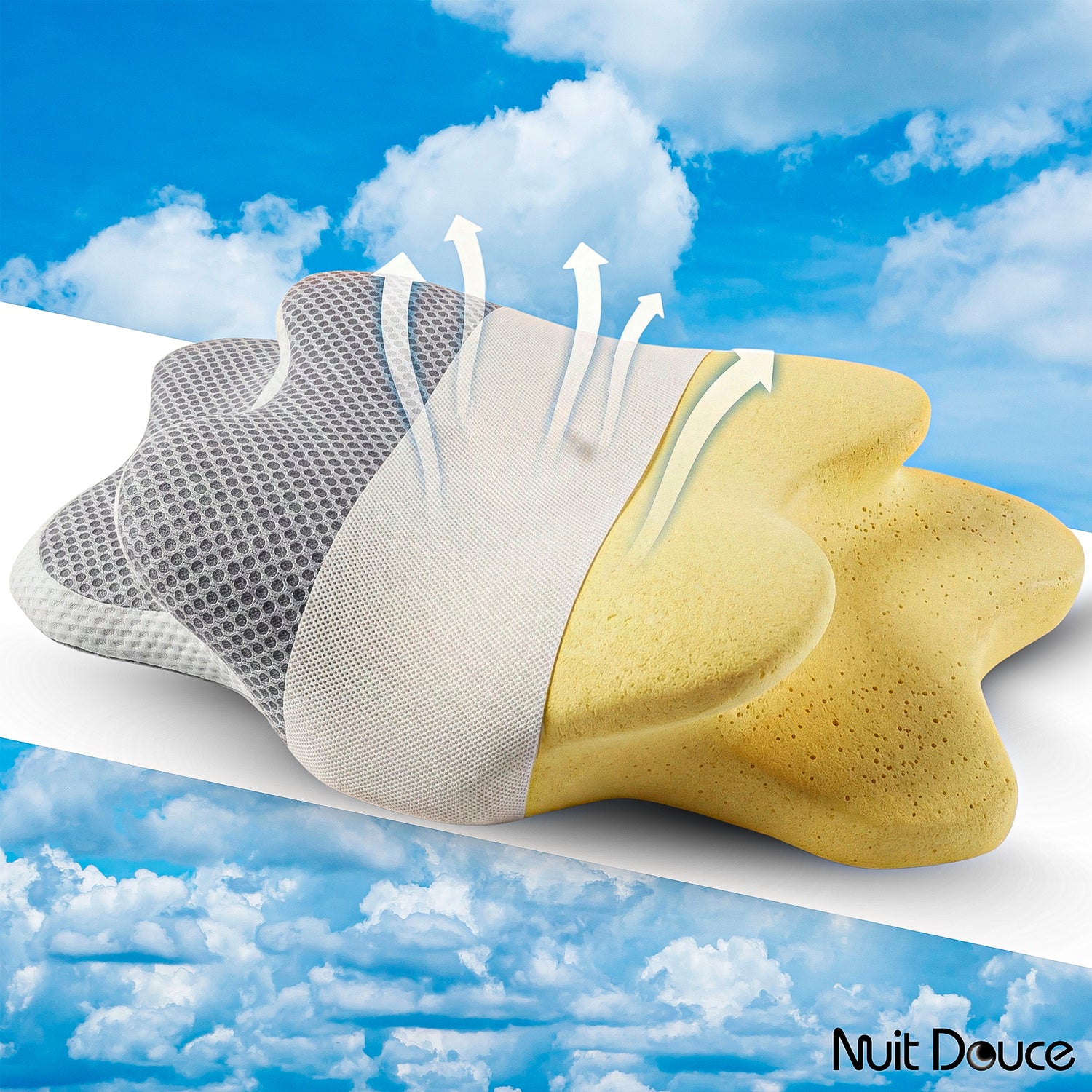 Forget waking up stiff. Our pillow is designed with slow-rebound memory foam, a smart technology that precisely adapts to your curves to relieve tension in your neck and shoulders.